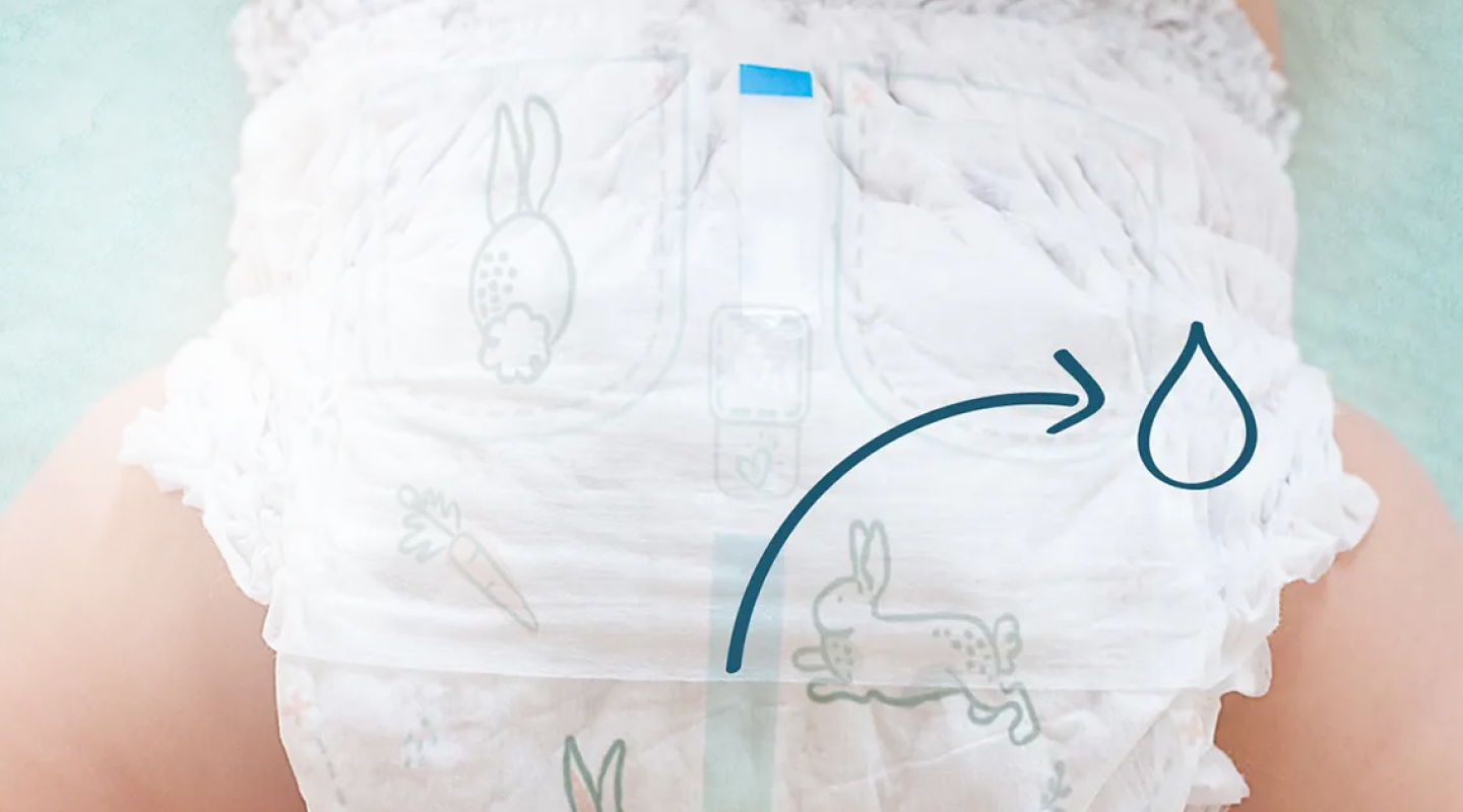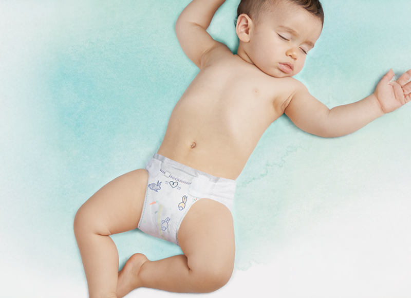 Chłonny wkład zatrzymuje wilgoć, zapewniając skórze dziecka suchość nawet przez 12 godzin