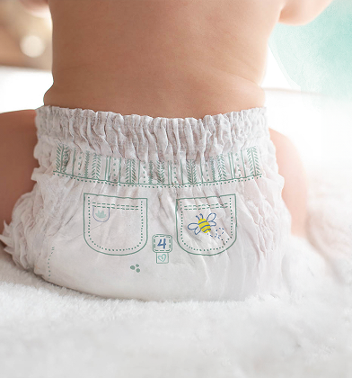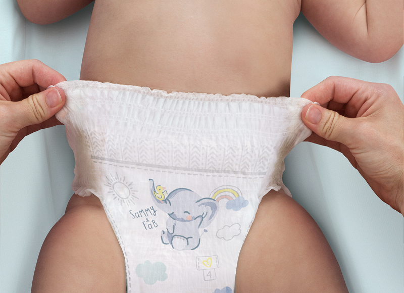 Elastyczna taśma wokół talii ułatwia zmianę pieluchomajtek i zapewnia wygodne dopasowanie